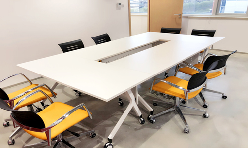 長(zhǎng)方形桌使空間區(qū)塊化,適用于組織中小型培訓(xùn),有助于組內(nèi)討論。