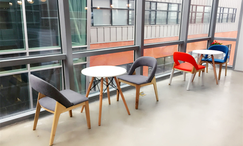 走廊外擺放小巧精致的洽談桌椅,透過玻璃窗,眺望風(fēng)景,閑暇時(shí)光可以放松自己的眼睛。